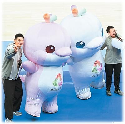 第十五届全国运动会吉祥物与观众互动。新华社记者 胡虎虎 摄