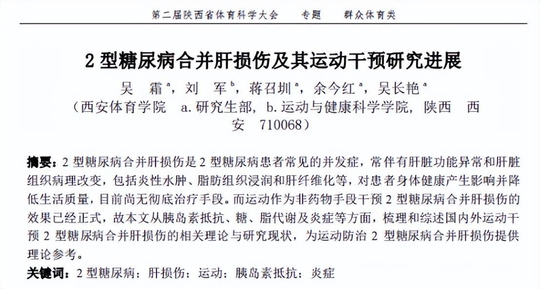 参考资料[1]吴霜,2型糖尿病合并肝损伤及其运动干预研究进展,第二届陕西省体育科学大会论文摘要集(专题九),2024-06-18