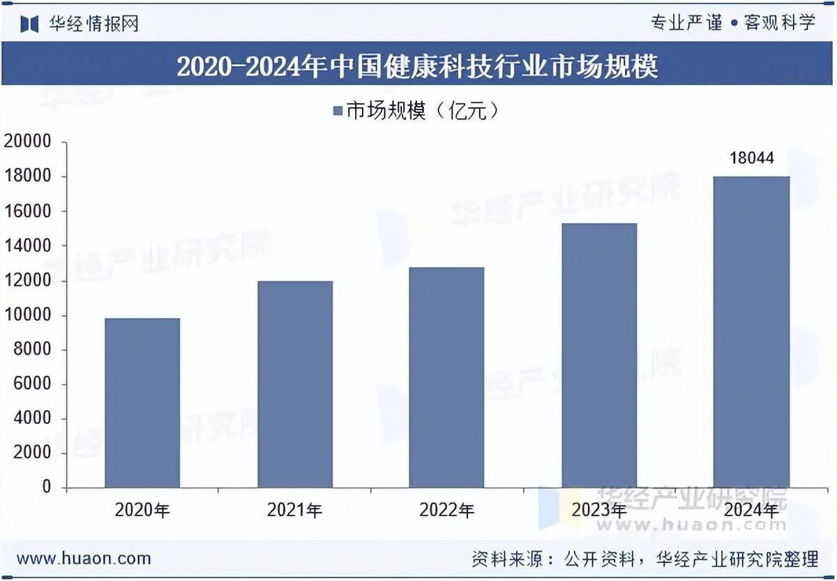 2024年中国健康科技行业市场规模达18044亿元,较2023年的15335亿元同比增长17.7%,延续高速增长态势。其中,智能穿戴、远程医疗、精准医疗成为核心增长引擎,国产设备国产化率稳步提升,出海步伐加快,行业正朝着精准化、普惠化、国际化方向高质量发展。
